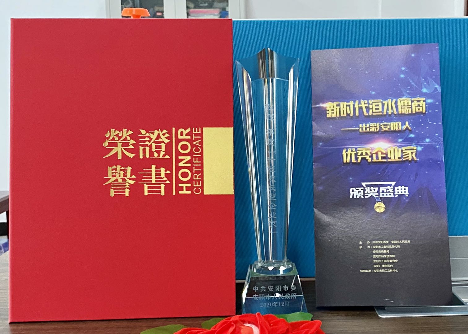 4月22日上午,由中共安陽市委、安陽市人民政府主辦的“優(yōu) 秀企業(yè)家”頒獎盛典在安陽市職工文體中心舉行,通報表揚年度“十大功勛企業(yè)家”、年度“外貿(mào)十強(qiáng)企業(yè)家”、年度“十佳成長型企業(yè)家”。